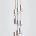 Les lustres Lamp/One au design épuré rehaussent les volumes et les intérieurs qui les abritent en diffusant une douce lumière directionnelle. Le pavillon plateau est entièrement en laiton massif satinée tandis que les diffuseurs sont en verre cristallin spécialement conçus pour accueillir de fines silhouettes en porcelaine de Limoges.